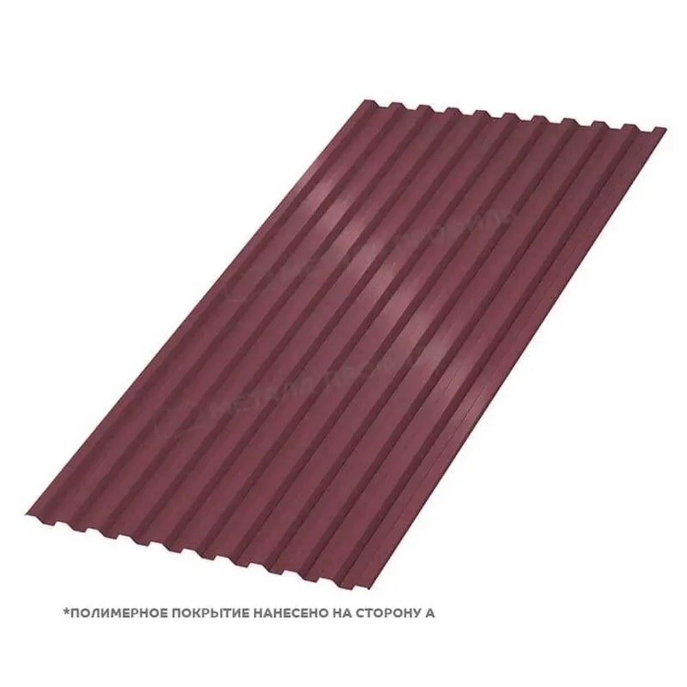 Профлист С-21 с покрытием PURMAN® в цвете RAL 3005 Красное вино представляет собой надежный материал для кровли и фасадов. Толщиной 0,5 мм, он сочетает прочность и эстетику, идеален для строительства и ремонта.